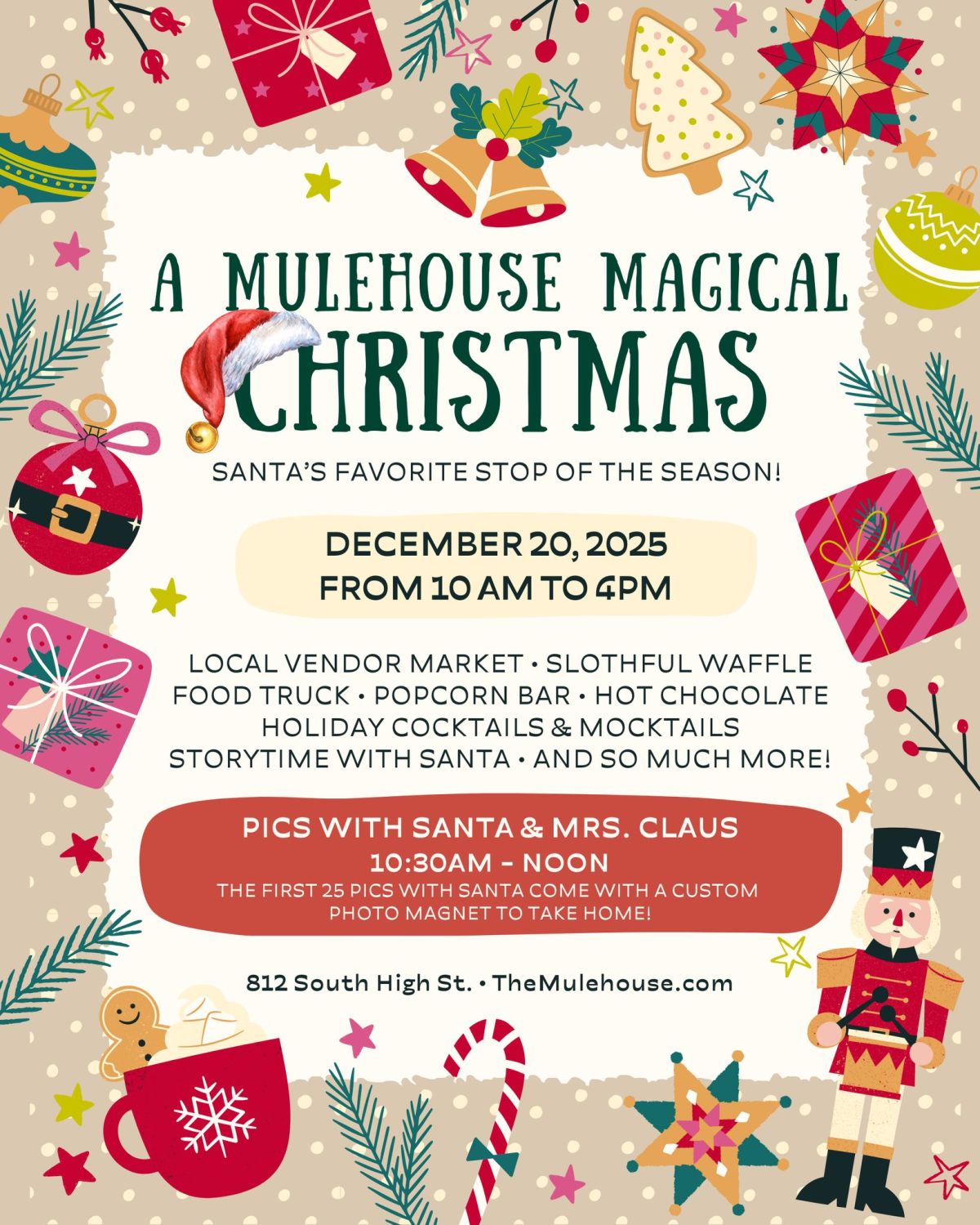 Step into the holiday spirit at A Mulehouse Magical Christmas – a festive, family-friendly celebration filled with music, magic, and Christmas cheer!