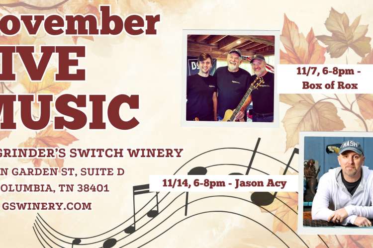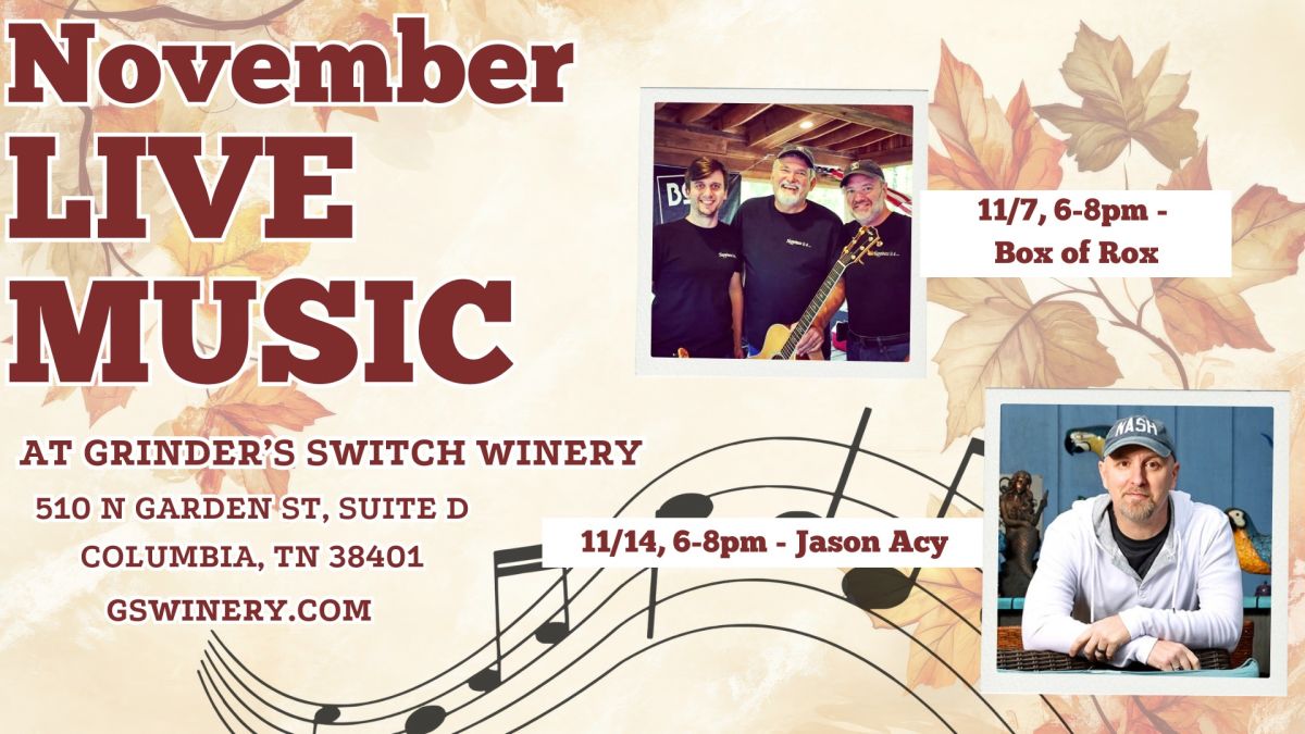 Make your way down to Grinder's Switch on Friday, November 14th to hear live music from Jason Acy while sipping on some delicious wine.