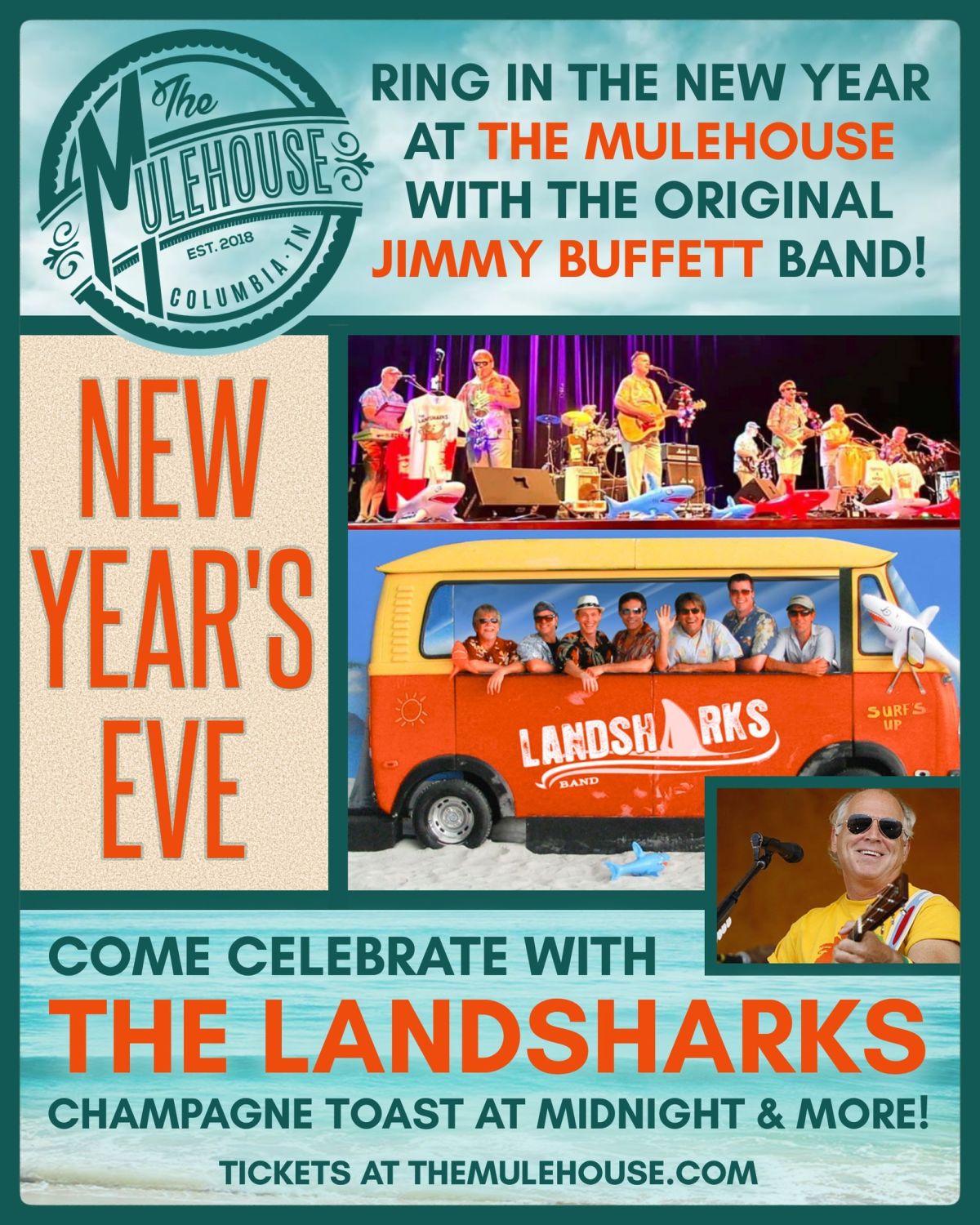 Celebrate your New Year's Eve with the original Jimmy Buffett band! Dress in your fun beach attire and get ready for the party of the year! You can purchase a table, balcony seat or a general admission ticket to dance the night away – because who can sit while THE LANDSHARKS are partying at The Mulehouse?! Beachball fun at midnight and contests and prizes throughout the night!