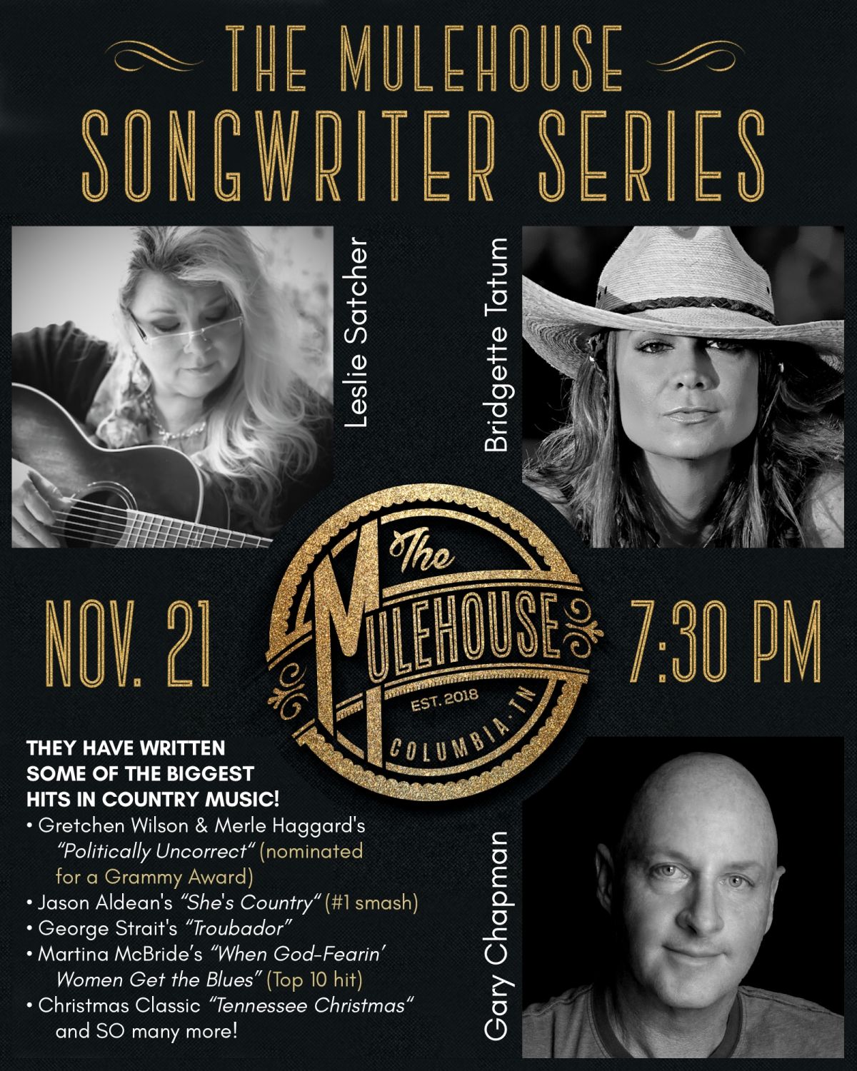 Welcome to our monthly show featuring Nashville's most talented songwriters from all ages and tenure in the business. Relax, sit back in our intimate setting and hear the stories behind these songs. These will be evenings of music you DON'T want to miss!
