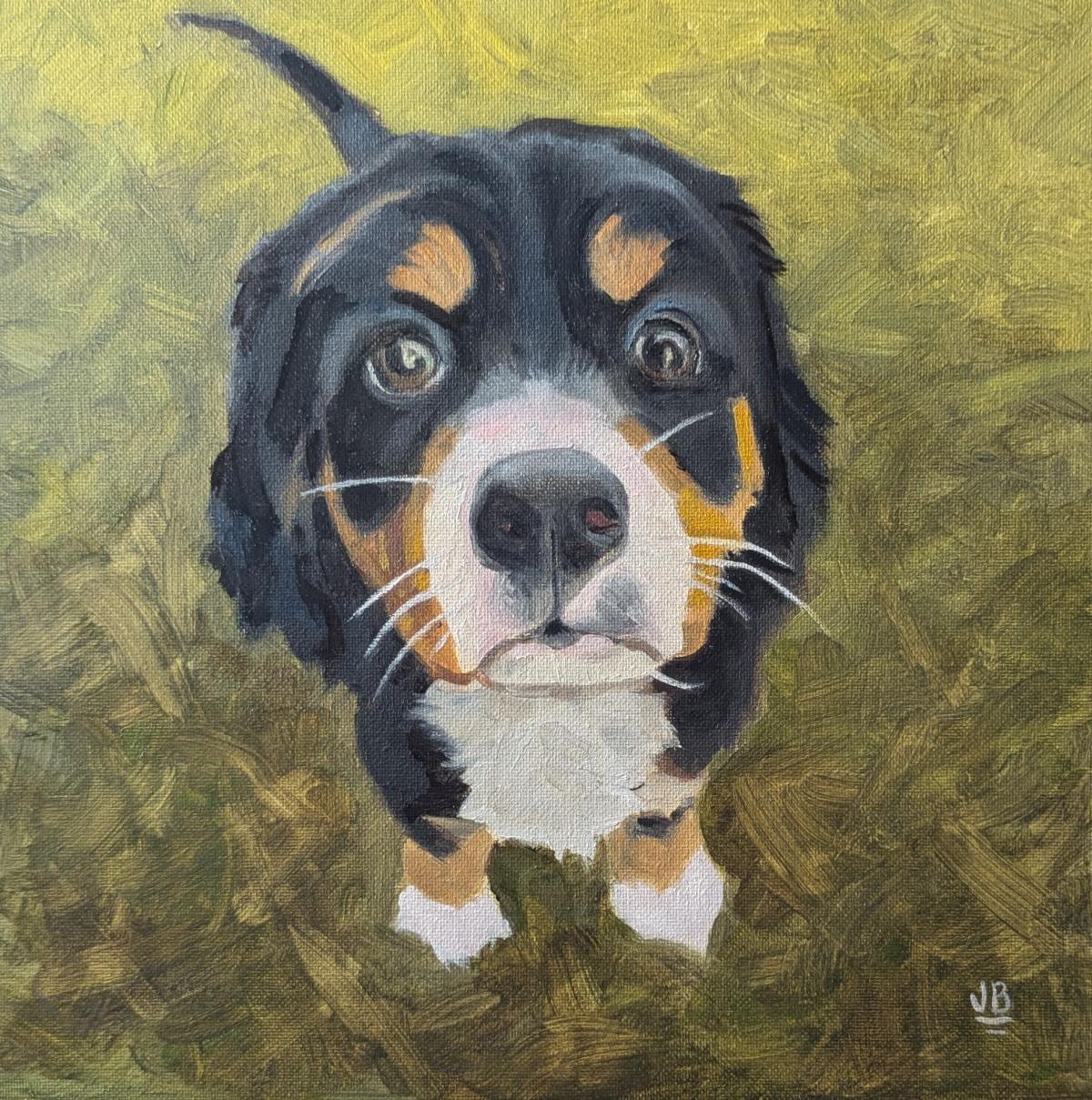 Jonathan Bassett captures moments of life, intimate family scenes, evocative landscapes, and animals brimming with personality, through the expressive language of oil paint. Rooted in the dramatic beauty of the Sierra Nevada mountains where he was raised, his work employs loose, confident brushwork, simple palettes, and striking value contrasts to evoke emotion rather than dictate detail. A firm believer in "leaving room," Jonathan intentionally steps back before overworking a piece, inviting the viewer to complete the narrative with their own imagination. This philosophy lends a sense of vitality and discovery to his widely sought-after pet portraits, known for their whimsical charm and accurate spirit, as well as his figurative and landscape works. Influenced by masters like Andrew Wyeth and contemporary painters including Chris Fornataro, Andrew Tischler, and Seth Winegar, Jonathan paints from his studio in Spring Hill, Tennessee, where he lives with his wife, Jackie, and their 3 daughters.