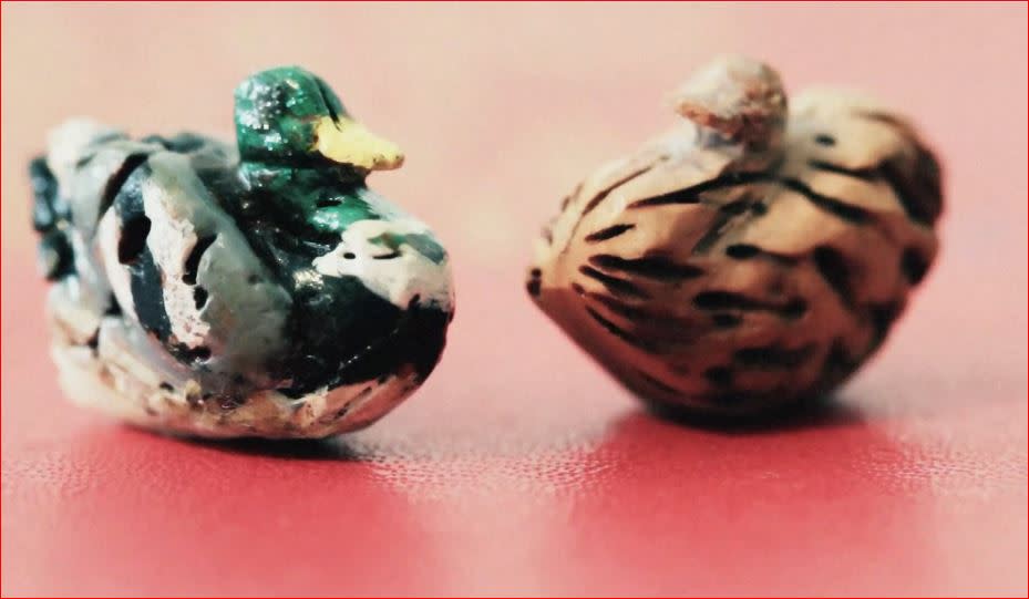 Peach seeds come alive by Roger Smith! Peach seeds are like people, they come in all shapes and sizes. Any peach seed can be transformed into art when before it only existed in the imagination of Roger Smith. What started in the late '60s or early '70s as a hobby has become an avenue for making new friends as well as becoming a business venture. Roger Smith's carvings were introduced to the media in 1987 after participating in the Maury County Fair in Columbia, Tn. An article in the Tennessean newspaper brought attention to Smith's peach seed carvings and led to various art exhibits at the National Black Arts Festival in Atlanta; The Historic Shaw Art Fair in St. Louis; The Tennessee Arts & Crafts Show in Nashville; The National Folk Festival in East Lansing; the Folklife Festival in Murfreesboro; and the White Oak Craft Fair in Woodbury, TN. In 1993, Smith was invited to participate in Christmas at the White House where his peach seed 'Santa' was displayed on the Christmas Tree and became part of the White House Collection. Copies of Roger Smith's work were also sent to the Afro-American Museum and Cultural Center in Wilberforce, OH. In 2001, a set of Smith's carvings became a permanent collection of the Tennessee State Museum. Smith has also appeared in three local television segments 'Tennessee Traveler', 'Tennessee Crossroads', and 'Lifestyles'. In 2006, Smith was a guest crafter on the Delta Queen Steamboat cruise. In 2012, his carvings were displayed at the Tullahoma Fine Arts Center. A photo of Smith's carvings is featured on the CD cover of 'The Fairfield Four' Revival CD. Roger Smith was featured in 'Tradition: Tennessee Lives & Legacies', a book by Robert Cogswell and 'Weird Tennessee' by Roger Manley. Peach seed carving takes a great deal of time and patience. To complete a carving takes four to eight hours. The secret is to get everything in the proper proportion. Smith has transformed peach seeds into just about everything from animals, villages, towns, people and an entire baseball stadium with players, spectators and cars!
